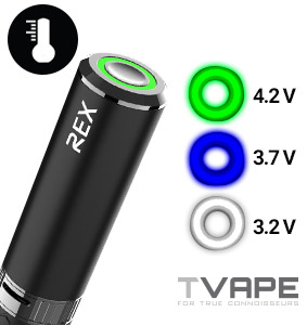 Es ist immer noch der Standard Yocan Tarif, wenn es um die Spannung Optionen kommt; Sie erhalten 3 Spannungsvoreinstellungen mit dem Yocan Rex: 3,2 V (weiß), 3,7 V (blau) und 4,2 V (grün). Jede Voreinstellung verfügt über eine eigene Farbanzeige auf der Einschalttaste, so dass Sie nicht im Dunkeln tappen, wenn es darum geht, Ihre Sitzungen zu starten. Wie bei den meisten anderen Geräten muss man auch beim Yocan Rex dreimal hintereinander auf die Einschalttaste drücken, um zwischen den Voreinstellungen zu wechseln.